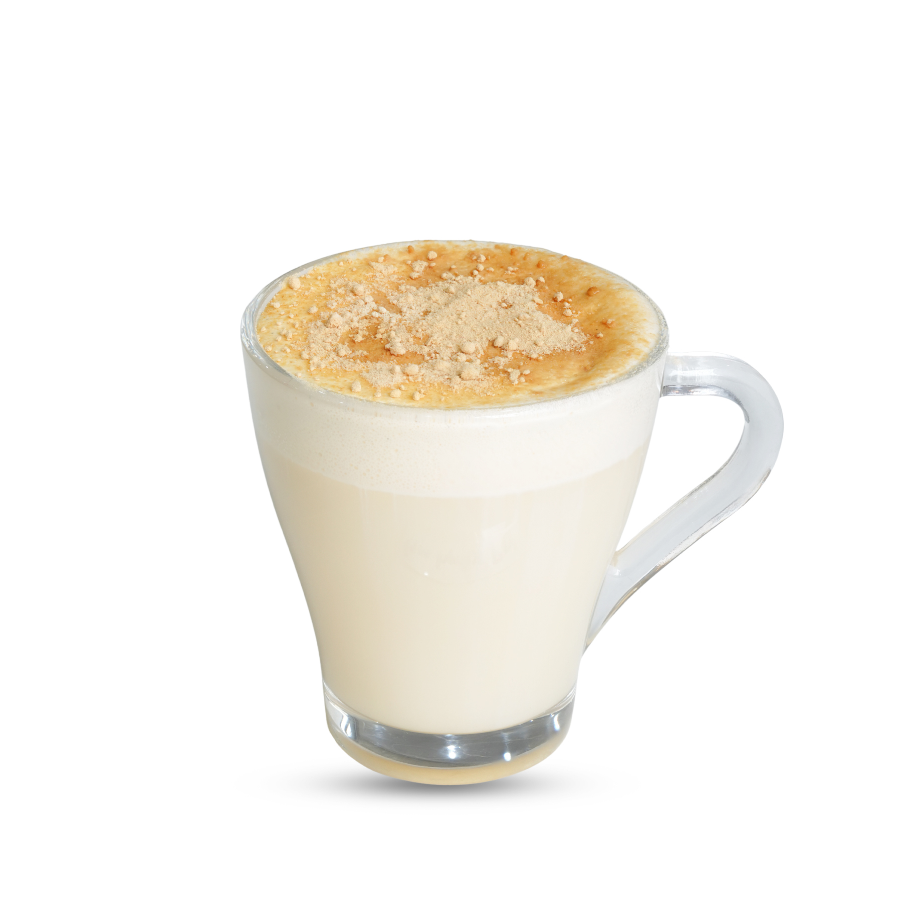 Sục nóng cốt trà oolong gạo rang, sữa hạt khuấy đều với đường, syrup và cốc